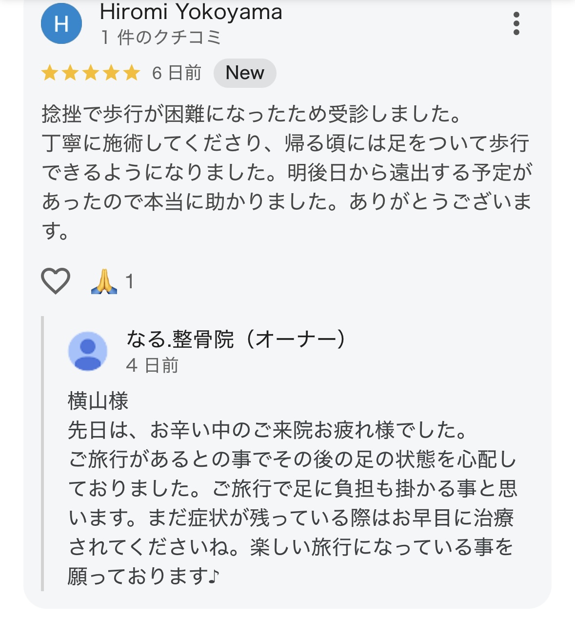 先日、嬉しい口コミを頂いたのでご紹介致します。